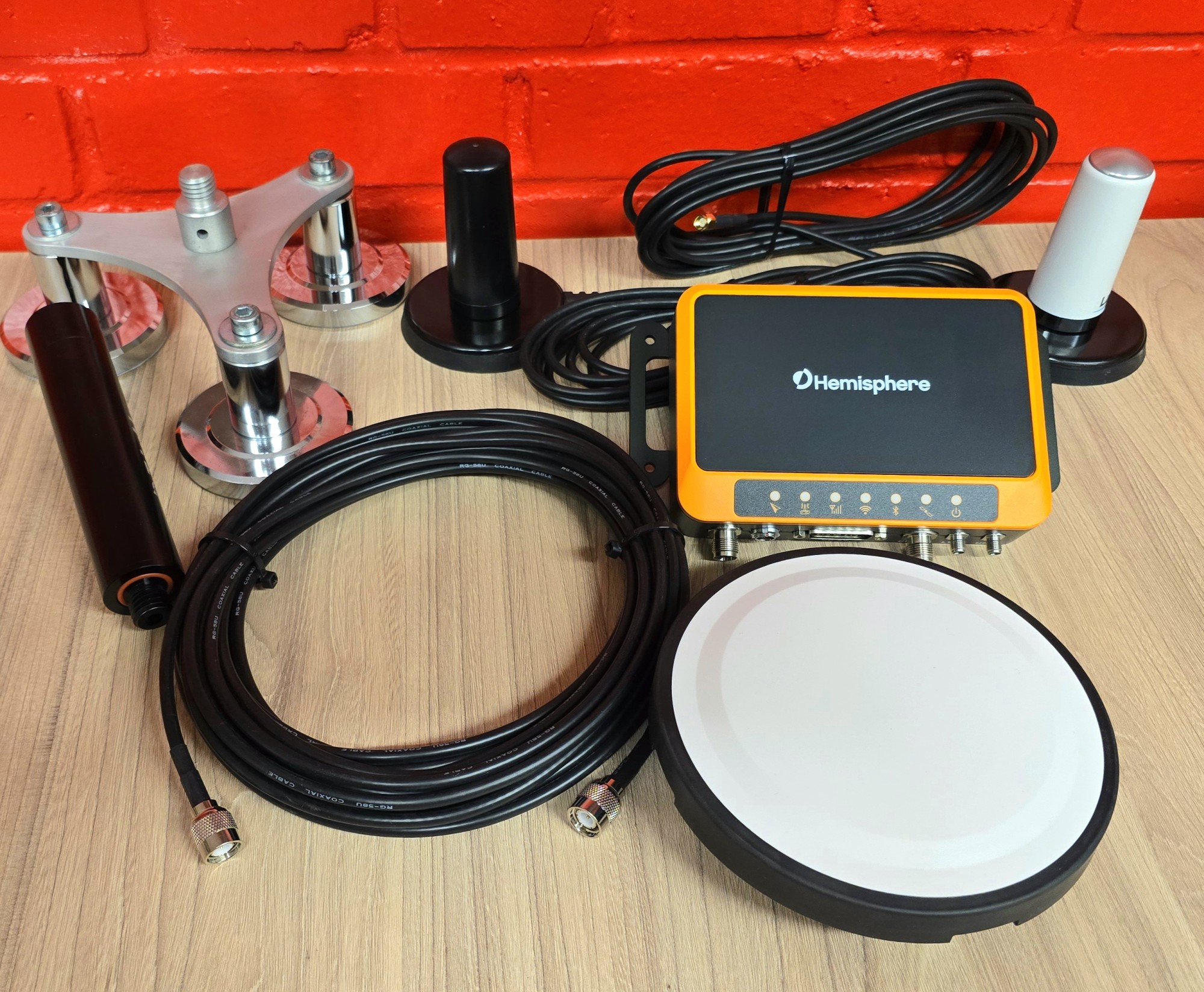 Hemisphere R632 Multi-frequency GNNS base station kit, complete with remote antenna’s.
